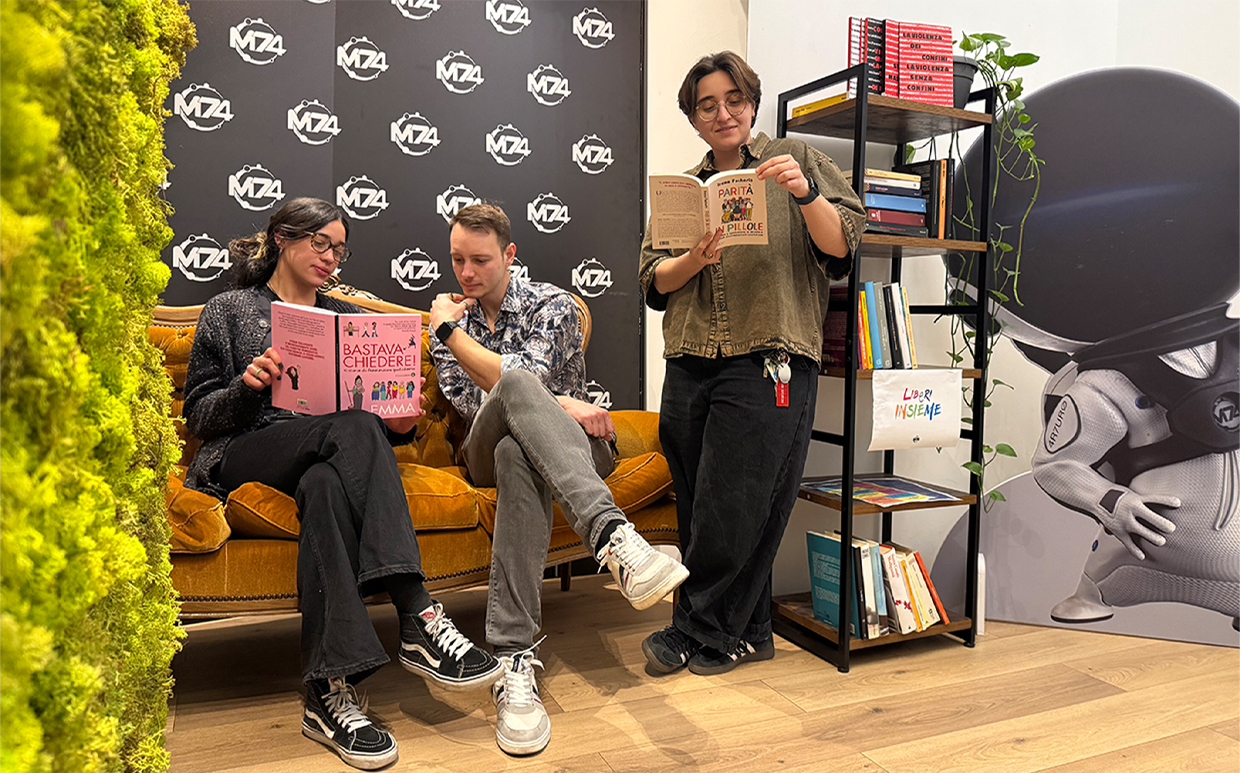 Within M74, we have established a library that offers a diverse catalog of books aimed at clarifying doubts, answering curiosities, and sparking conversations among employees about gender equality and inclusivity.